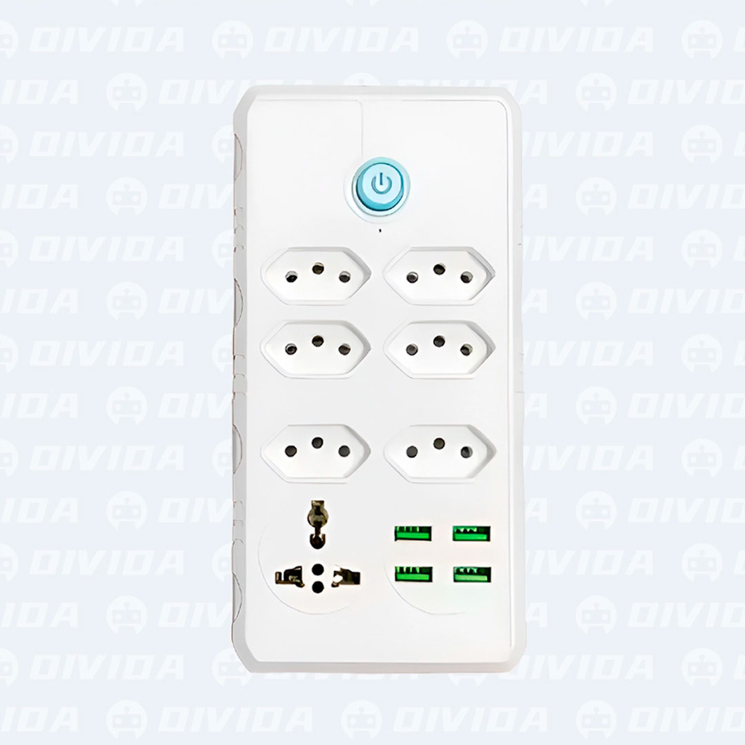 A extensão elétrica com 6 tomadas é um aparelho seguro que possibilita a conexão de até 6 dispositivos eletrônicos e também contêm quatro entradas USB, ao mesmo tempo em um único local. Além disso ela também conta com um botão de liga/desliga. Sua principal vantagem é que não sobrecarrega a rede elétrica e não eleva o consumo de energia.