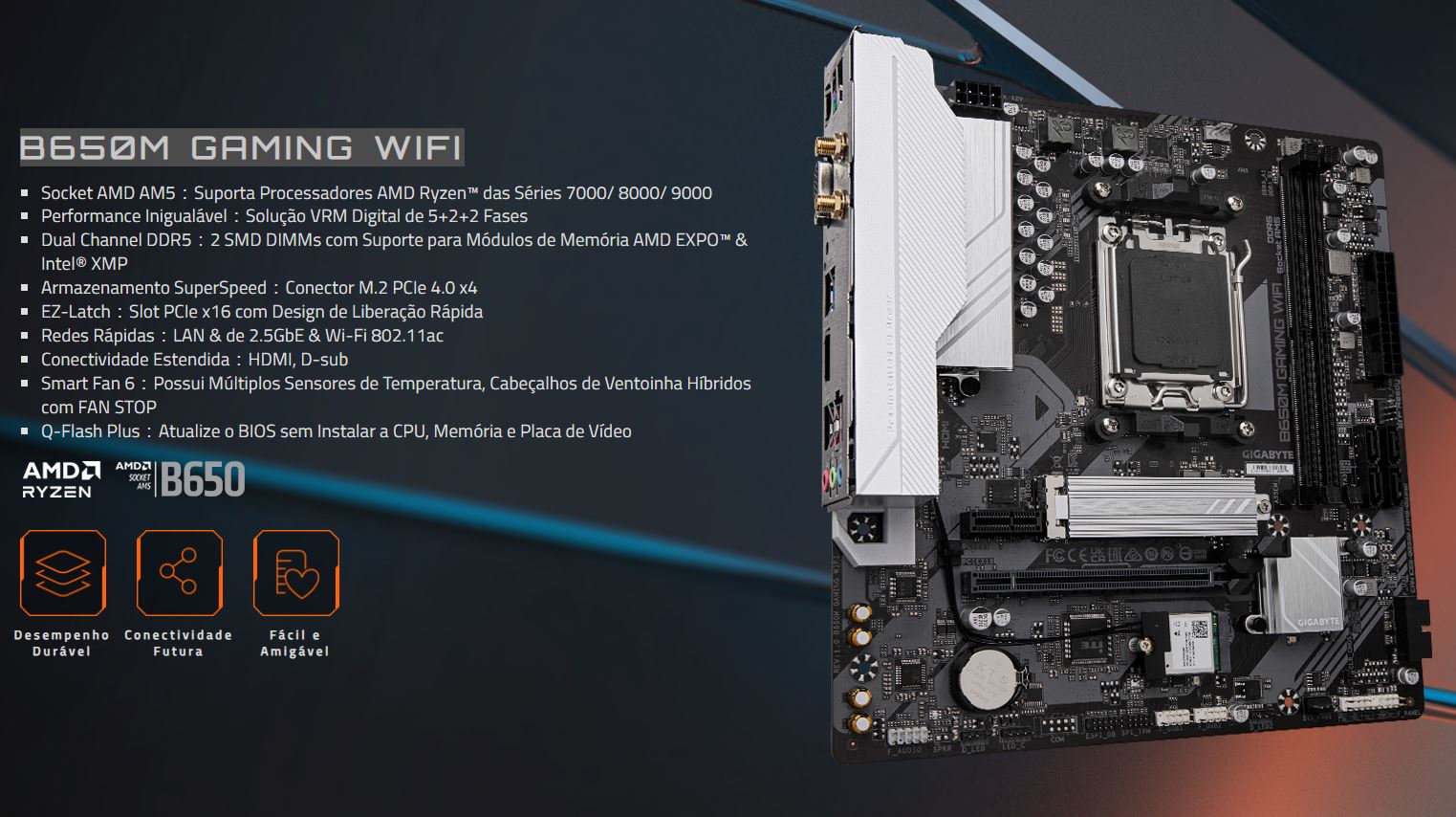 Socket AMD AM5:Suporta Processadores AMD Ryzen™ das Séries 7000/ 8000/ 9000