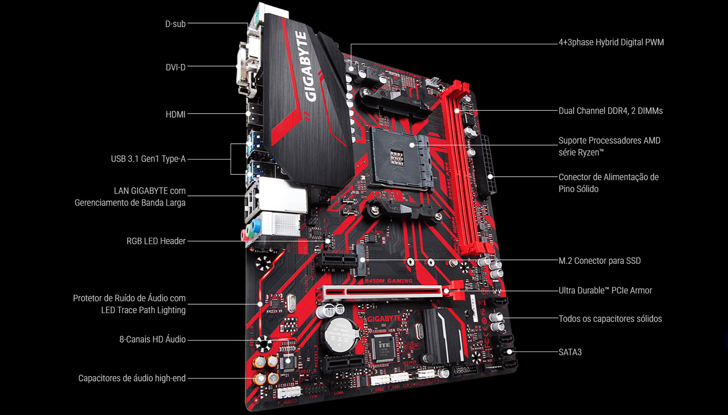 Placa Mãe Gigabyte B450m Gaming Amd Am4 Matx Ddr4
