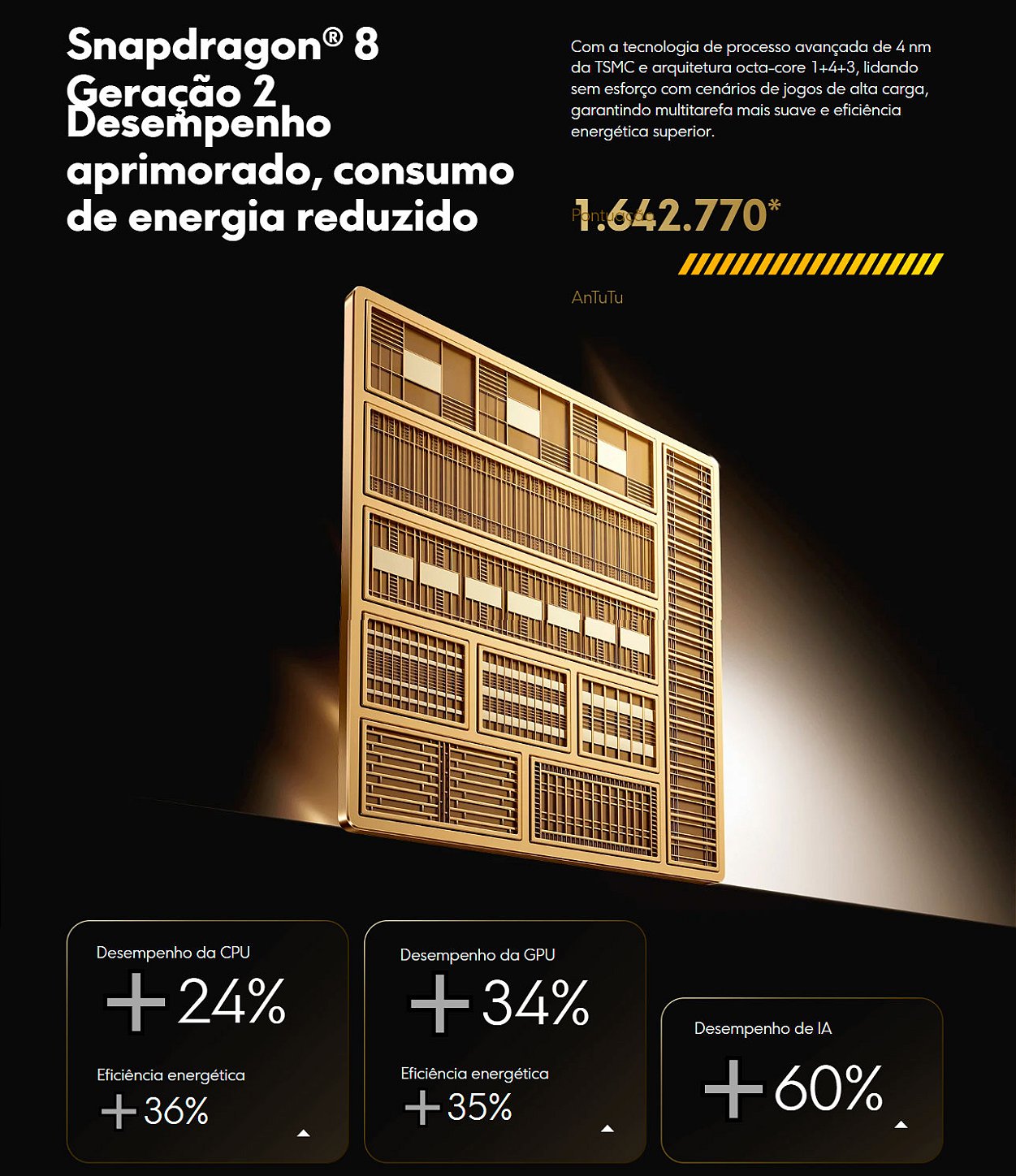 Plataforma móvel Snapdragon® 8 Gen 2Processo de fabricação TSMC 4nm